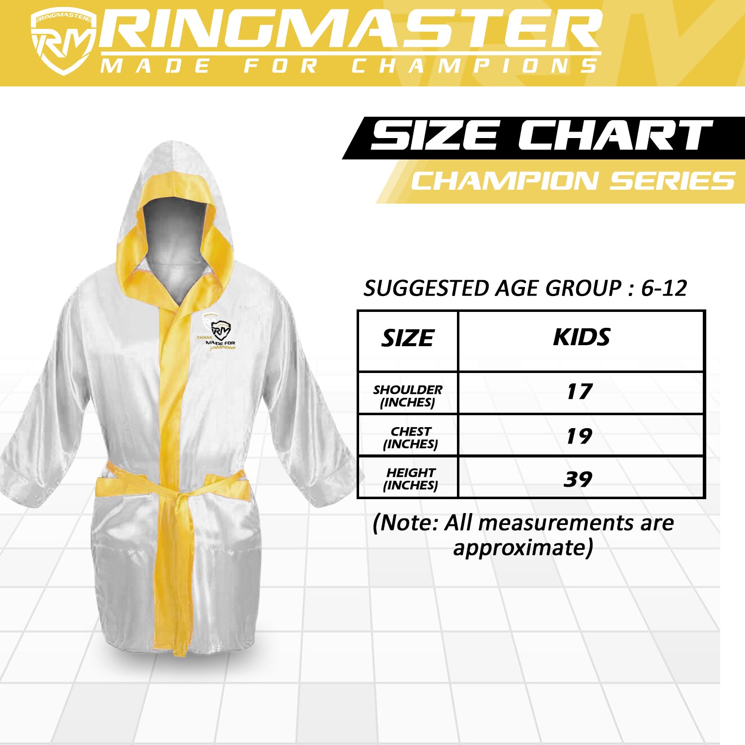 - Introducing RingMaster Sports brand new Champion Series Kids Boxing Robes made of lightweight 100% Satin material.