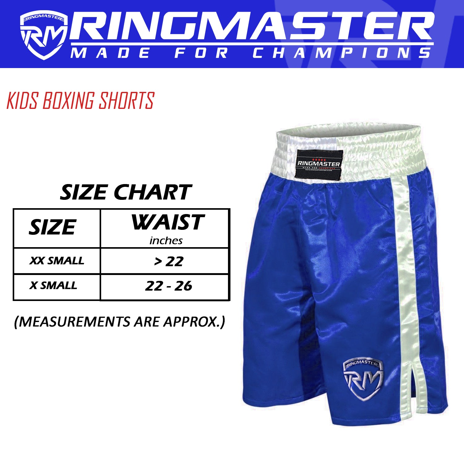 - RingMaster Kids Boxing Shorts are made of light weight 100% Satin material.
